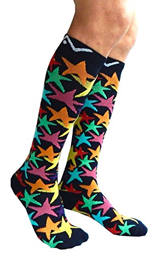 A-swift - Calze a compressione graduata (1 paio) per donne e uomini per sport, infermieri, viaggi, sci e gravidanza, vene varicose, TVP: aumentano la resistenza e il recupero, Stars, L/XL
