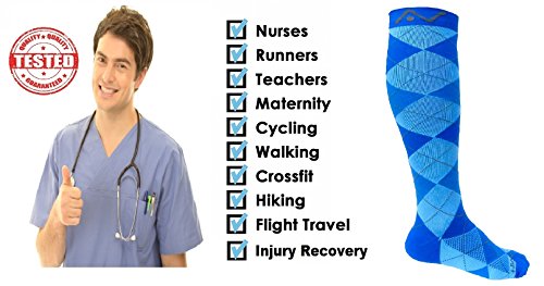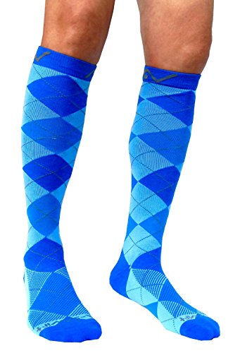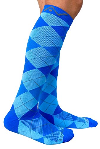 A-swift - Calze a compressione graduata (1 paio) per donne e uomini per sport, infermieri, viaggi, sci e gravidanza, vene varicose, TVP: aumentano la resistenza e il recupero, Blue Argyle, L/XL