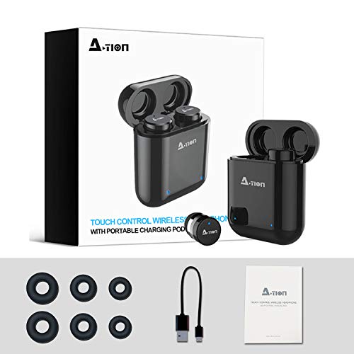 A-TION Auricolari Bluetooth, Wireless Mini Cuffie Senza Fili Bluetooth 5.0 HD Stereo con Cancellazione Rumore, Smallest Earbuds Sport in Ear Built-in Microphone & Touch Control, IPX Impermeabile