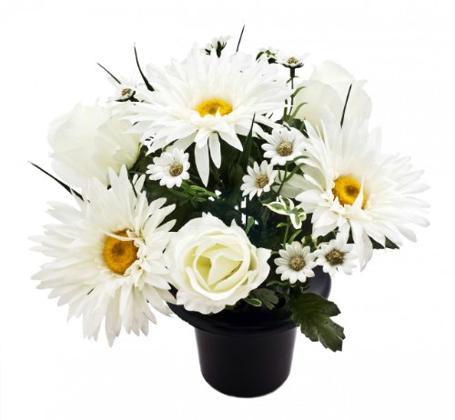 A1-Homes Rose Artificiali Color Gerbera e Margherita commemorativa per Tomba Inserto Vaso