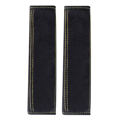 A135-1 2 pezzi protezioni per cinture auto, in morbida microfibra, imbottiture per la spalla, imbottiture per la spalla, colore nero (2 pezzi nero con cuciture gialla)