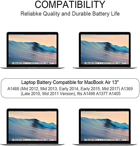 ZJS A1496 Batteria per MacBook Air 13''A1405 A1466 (Metà 2012 Metà 2013 Inizio 2014 Inizio 2015)A1369 (Fine 2010, Metà 2011 Versione )A1377(Fine 2010) MC503LL / A MC504LL / A [7.6V 55Wh]