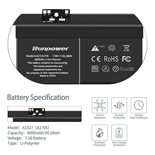A1534 Batteria, Runpower A1705 A1527 batteria di ricambio per computer portatile è compatibile con MacBook 12 pollici Retina A1534 batteria (Early 2015 2016 2017) 7.56V 36.28WH 4800mAh