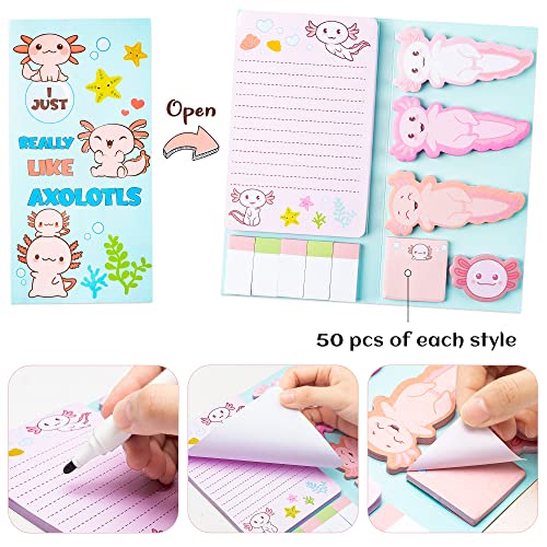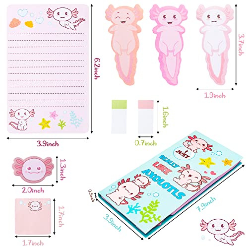 A1DIEE Axolotl - Set di foglietti adesivi a forma di pesce messicano che cammina a piedi, con linguette adesive, segnapagina, segnalibri, adesivi per cancelleria, regali per ragazze, ufficio, scuola,