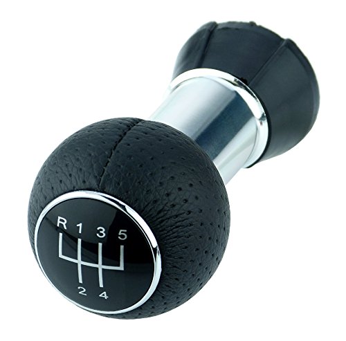 L&P A260-2 - Leva del cambio in vera pelle traforata con pomello, colore nero, 5 marce, pomello da 12 mm, ricambio con montaggio plug & play