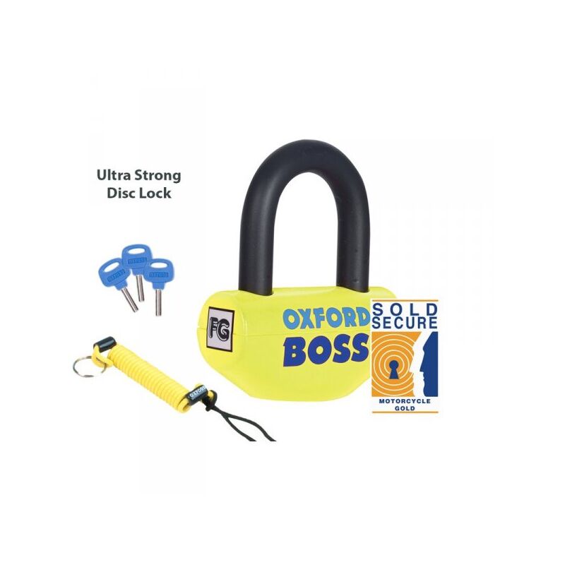 Lucchetto universale con comoda staffa portacavi e cavo di avvertimento. Sistema a doppio bloccaggio con gancio in acciaio temperato (12,7 mm). Involucro esterno in acciaio temperato giallo.Tre chiavi con portachiavi Oxford. Doppia funzione lucchetto / bloccadisco,Gancio di chiusura in acciaio indurito da 12,7mm Meccanismo di bloccaggio a doppia sfera,Coperchio chiave scorrevole e antipolvere Supera i 5 minuti nel test di scasso,Resiste al taglio da sega o da cesoia Testato contro trapani e martello,Approvato da Sold Secure con lo standard Oro Approvato da SBSC,Standard ART 4076,Servizio di sostituzione chiavi in caso di smarrimento MARCA OXFORD SKU HC800261 Modello OF39 Diametro Cilindro 12,7mm Chiavi 3 Pezzi Componente Cavo Promemoria Bloccadisco Incluso