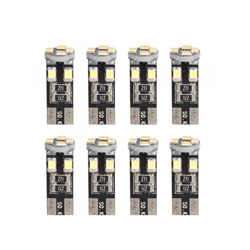 Lampada Led T10 8 SMD 2835 12V, 1.5W, 100lm, Bianco Freddo 6500K Le lampadine auto a LED T10 con 8 SMD 2835 sono versatili e adatte per diverse applicazioni all'interno e all'esterno dell'auto. Comunemente utilizzate come luci di posizione anteriori e posteriori, luci targa, luci interne e di lettura, oltre alle luci del bagagliaio Altezza 28 millimetri x Larghezza 10 millimetri Costruito nel cancellatore di canbus, quindi non ha alcun errore per auto canbus Angolo di illuminazione a 360 gradi, nessun punto cieco. Inserzione è valido per 8 Lampade Led Lampada Led T10 8 SMD 2835 12V, 1.5W, 100lm, Bianco Freddo 6500K Le lampadine auto a LED T10 con 8 SMD 2835 sono versatili e adatte per diverse applicazioni all'interno e all'esterno dell'auto. Comunemente utilizzate come luci di posizione anteriori e posteriori, luci targa, luci interne e di lettura, oltre alle luci del bagagliaio Altezza 28 millimetri x Larghezza 10 millimetri Costruito nel cancellatore di canbus, quindi non ha alcun