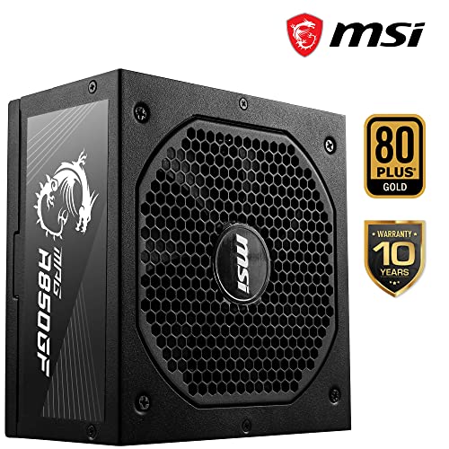 MSI MPG A850GF Alimentatore, Spina EU - 850W, 80 Plus Gold, PSU ATX completamente modulare, supporto GPU 3 x 6+2 pin, condensatori giapponesi 105°C, cavi neri piatti