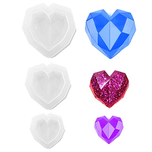 Aabellay - Stampi in resina a forma di cuore, con forma di cuore, in silicone, a forma di cuore, in resina epossidica, per collane e ciondoli a forma di cuore, 3 misure