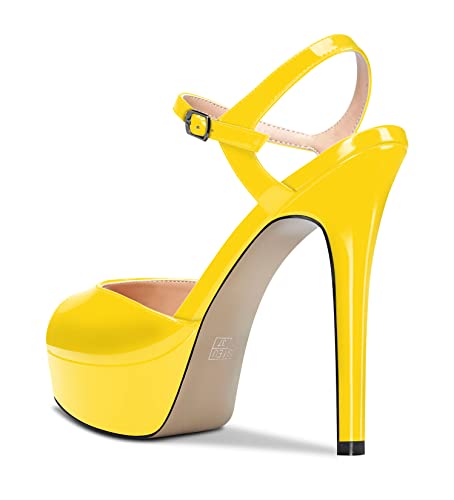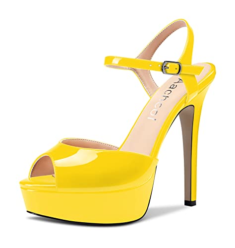 Aachcol Donna Piattaforma Sandali Cinturino alla Caviglia Aperte sulla Punta Spillo Alto High Tacco Heel Slingback Dress Scarpe 13 CM Giallo Verniciata 43 EU