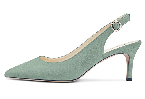 Aachcol Donna Slingback Pumps Spillo Medio Tacco Heel a Punta Cinturino alla Caviglia da Matrimonio Ufficio Feste Dress Scarpe Sandali 6 CM Turchese Verde Scamosciato 39 EU