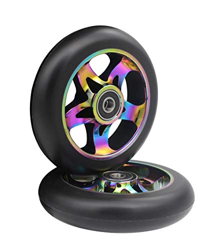 Aaibiku - Ruote di ricambio per scooter Stunt da 110 mm, con cuscinetti Abec-11, adatte per Fuzion/Land Surfer/Albott/TBF Stunt Scooters - Colorato/Nero (coppia)