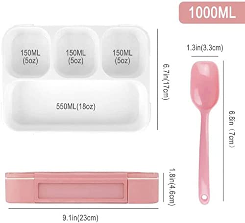 Aaliyahh Lunch Box, Pranzo al sacco per adulti a 4 scomparti con cucchiaio,contenitori per il pranzo a prova di perdite da 1000 ml per scuola,lavoro e viaggi,senza BPA (Rosa)