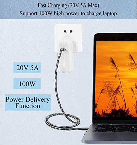 Cavo USB C PD da 100 W: supporta l'erogazione di alimentazione USB fino a 100 W (20 V / 5 A) con E-Marker e smart chip PD che regola automaticamente la corrente, la ricarica rapida di tutti i tuoi USB di tipo c come telefono, tablet, laptop o persino un monitor, risparmiando il tuo tempo.