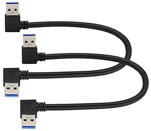 AAOTOKK 2Pack Angolo Sinistro Destro USB3.0 90 Gradi Maschio a Maschio Cavo Prolunga per Ricarica dati per Disco Rigido,Stampante,Modem,Dispositivo di Raffreddamento per laptop(0,3M/1Piedi-Nero)