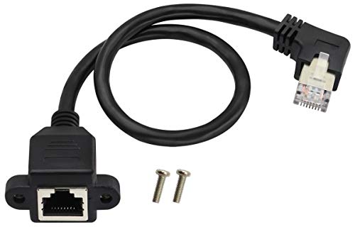 AAOTOKK 90 Grado Cat 6 Cavo Ethernet Piegatura a Destra RJ45 Maschio a Femmina Connettore Rete Ethernet Schermato Vite Cavo Prolunga per Montaggio Pannello per Router,Modem (30 cm/1 Ft Destra)