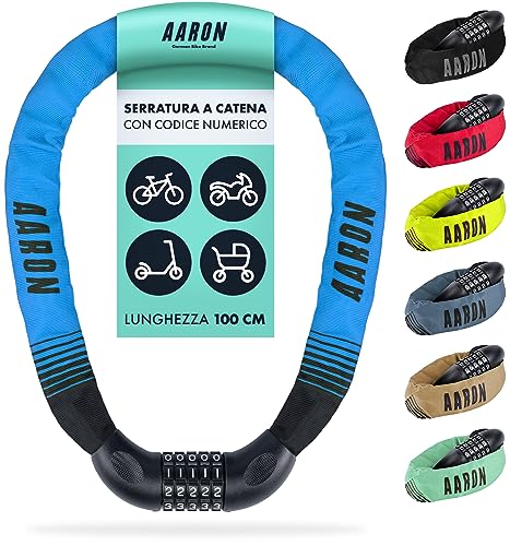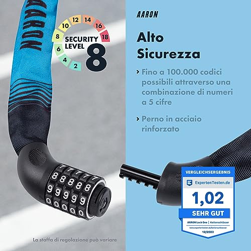 AARON Lock One - Catena antifurto per bicicletta con codice a 5 cifre - lucchetto in metallo e alta sicurezza - per bici elettrica, mountain bike, da trekking, da turismo, da corsa, veicoli elettrici