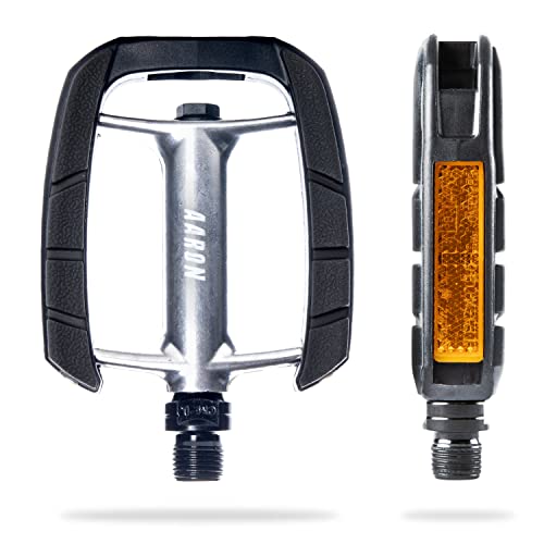 AARON City Pedali da bicicletta con impugnatura in gomma antiscivolo e cuscinetto a sfera industriale sigillato, pedali da trekking con riflettori per e-bike, trekking, City Bike, Argento/Nero