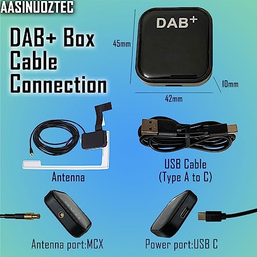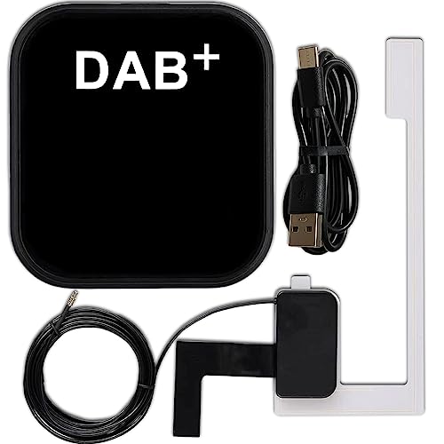 Kit auto per la trasmissione audio digitale DAB DAB+ Box: Include: Antenna, ricevitore DAB, cavo USB (da A a C).