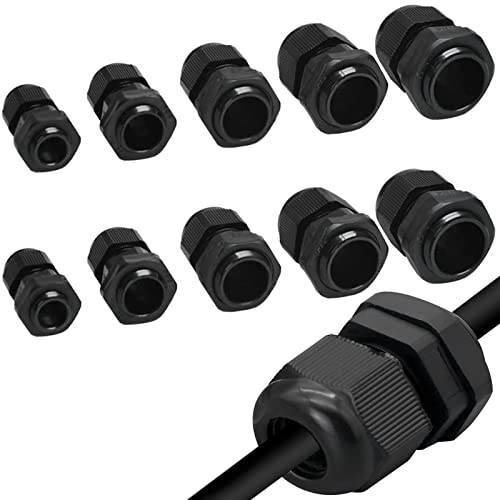 Aatpuss 25 Pezzi Pressacavo Regolabile, Pressacavi Impermeabili, Connettori Pressacavi, per Accessori Elettrici Resistenti Alle Intemperie Come Prese, Interruttori(Nero)