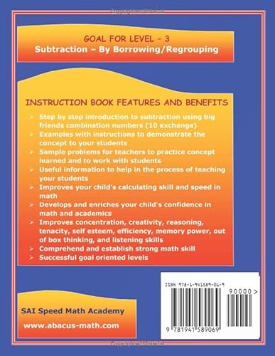 Abacus Mind Math Instruction Book Level 3: Step by Step Guide to Excel at Mind Math with Soroban, a Japanese Abacus: Volume 3