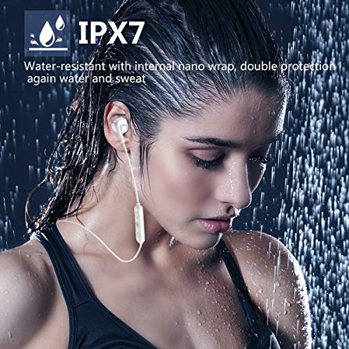 Abafia Auricolari Bluetooth, Cuffie Bluetooth 5.0 Sportive IPX7 Impermeabile, Cuffie per Sport Anti Rumore Stereo HiFi Durata Della Batteria 10H per Jogging/Outdoor/Ufficio (Bianca)