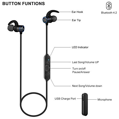 Abafia Cuffie Bluetooth, Auricolare Bluetooth Sport Auricolari in-Ear Bluetooth V4.2 CVC 6.0 con Magnetiche per iPhone X / 8/7 / Note 8 / S9 / Huawei P20 e Altri Telefoni Android o iOS (Nero)