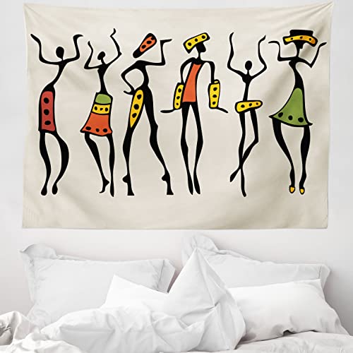 ABAKUHAUS Africano Arazzo, Clan Etnico Ballerino, Tessuto Parete Appeso Decorazione per Camera da Letto, Soggiorno, dormitorio, 150 x 110 cm, Multicolore Nero