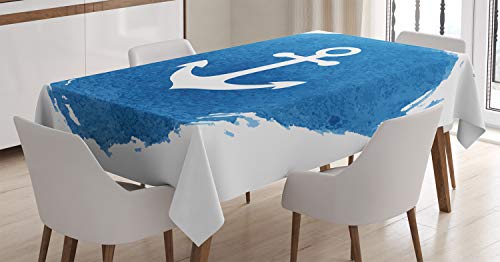 ABAKUHAUS Ancora Tovaglia, in Fondo del Mare calmo, Rettangolare per Sala da Pranzo e Cucina, 140 cm x 240 cm, Blu Bianco