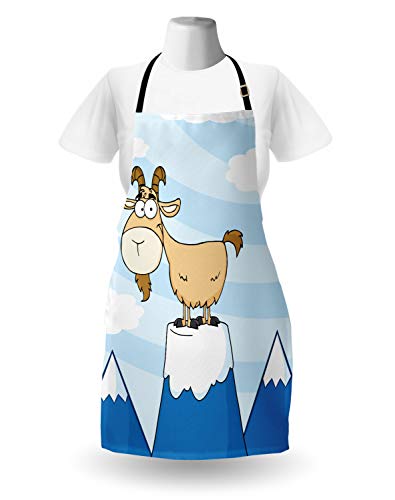 ABAKUHAUS Capra Grembiule, Doodle Capra di Montagna di ritiro, Comodo per la Cucina Unisex con Collo Regolabile per Cucinare Cuocere Arrostire e Giardinaggio, Celeste Blu