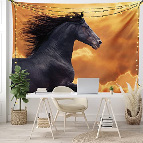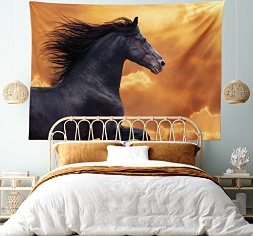 ABAKUHAUS Cavalli Arazzo, Galloping Cavallo frisone, Tessuto Parete Appeso Decorazione per Camera da Letto, Soggiorno, dormitorio, 230 x 140 cm, Nero Arancione