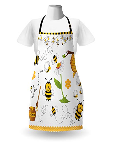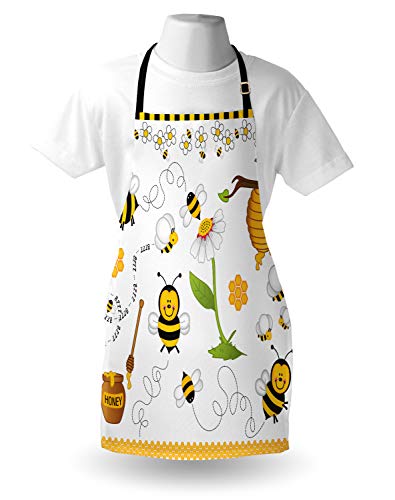 ABAKUHAUS Collage Grembiule, Api Margherite Camomilla, Comodo per la Cucina Unisex con Collo Regolabile per Cucinare Cuocere Arrostire e Giardinaggio, Giallo Bianco Nero