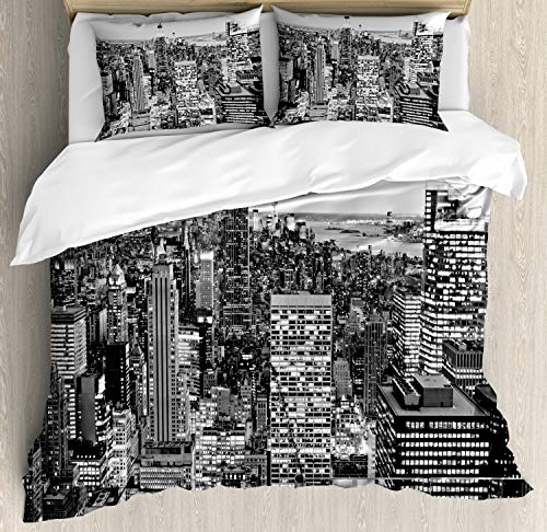 ABAKUHAUS New York Set Copripiumino, New York Manhattan, Arredamento del Letto 3 Pezzi con 2 Federe Cuscini, 220 x 220 cm - 75 x 50 cm, Grigio