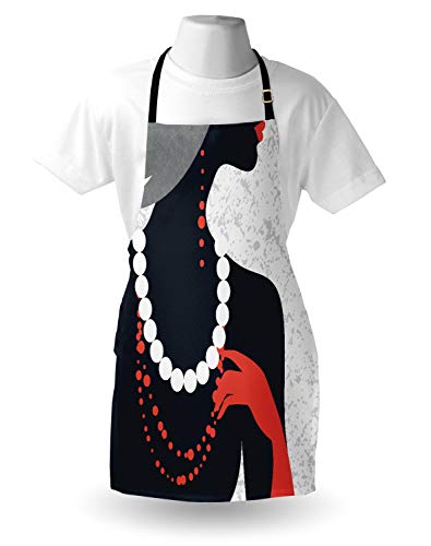 ABAKUHAUS Donna Vintage Grembiule, Collana di Perle, Comodo per la Cucina Unisex con Collo Regolabile per Cucinare Cuocere Arrostire e Giardinaggio, Grigio Nero e Vermilion