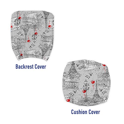 ABAKUHAUS Eiffel Fodera per Sedia da Ufficio, Senna e Colombe, Fodera Protettiva in Tessuto Decorativo Elasticizzato, Rosso Grigio Nero