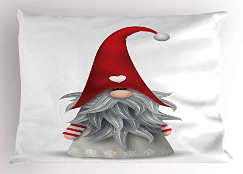 ABAKUHAUS Gnomo Federe Cuscini Stampata, Folklore Creatura Finlandese, Decorativo e Dimensioni Standard, 65 cm x 50 cm, Rubino Chiaro Grigio