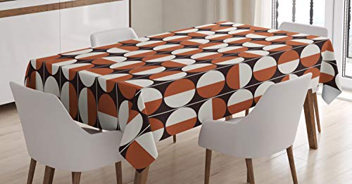 ABAKUHAUS Mezzo secolo Tovaglia, Circles bicolor, Rettangolare per Sala da Pranzo e Cucina, 140 cm x 170 cm, Seal Brown Cannella