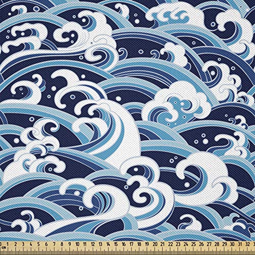 ABAKUHAUS Saluto giapponese Tessuto a Metraggio, Acqua Splash Schiuma, Tessuto a Maglia Elasticizzato per Abbigliamento, Cucito e Arti, 1 m, Pale Blue Navy Blue