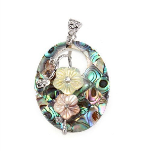 Abalone Shell Pendant - SODIAL(R) Ovale Hollow Fiori Paua Abalone Shell Pendant Bead 1.6"x1.2"