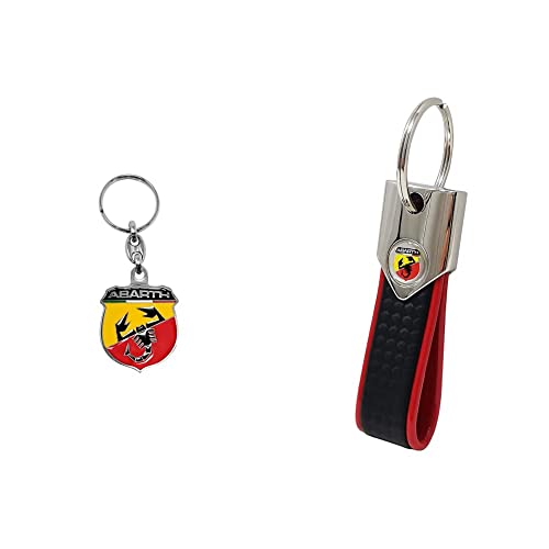 Abarth 21762 Portachiavi Scudetto Ufficiale In Metallo, Giallo E Rosso, Unica & 21759 Portachiavi Ufficiale Carbon Red, Rosso