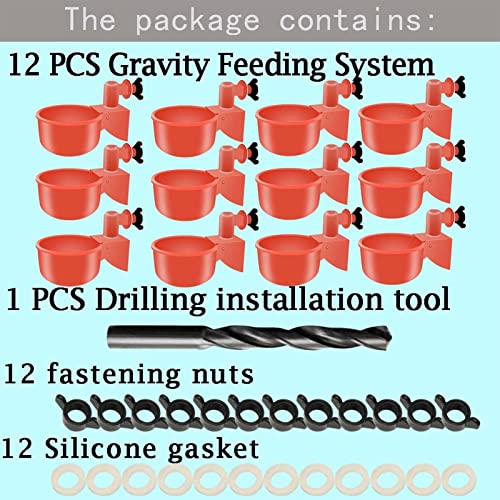 Set di 12 abbeveratoi per pollo, dispenser per acqua di pollo, dispenser per pollo, adatto per pulcini, anatra, tacchino, coniglio, pollame, set di dispenser per acqua, colore arancione