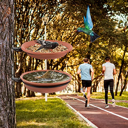 2 abbeveratoio per uccelli, da giardino, per uccelli, balcone, casetta per uccelli da appendere, con supporto, resistente alle intemperie, per balcone, giardino, terrazza, decorazione (marrone)