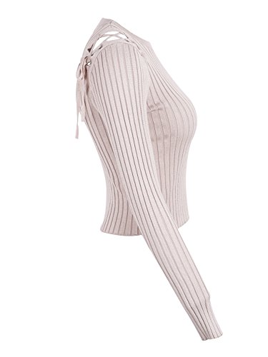L'abbigliamento delle donne simplee maglia a maniche lunghe pullover nervata jumper slim fit merletto maglione