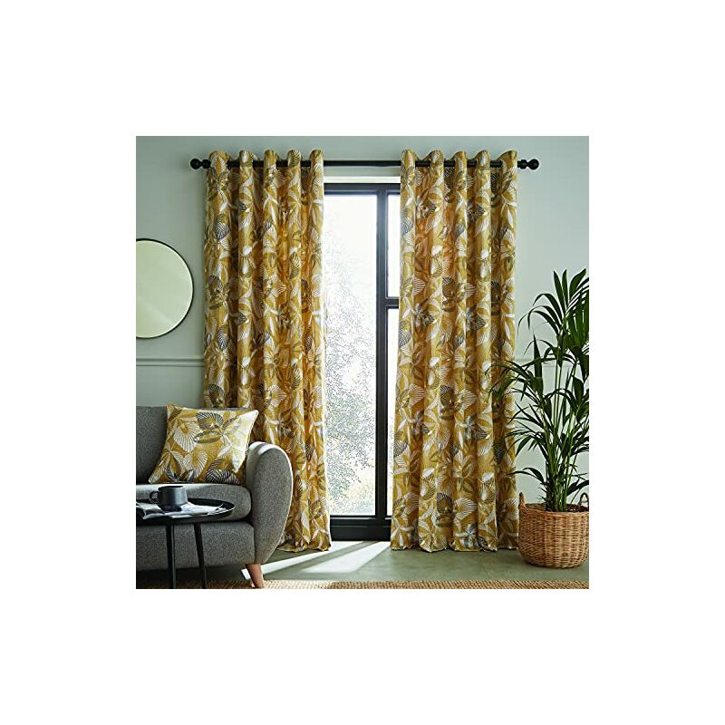 Catherine Lansfield Abbotsley Leaf - Tende con occhielli, 100 x 150 cm, colore: Ocra Curtains- 46x72 Inch