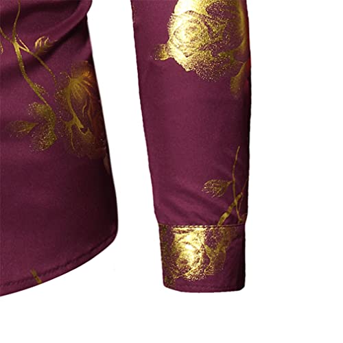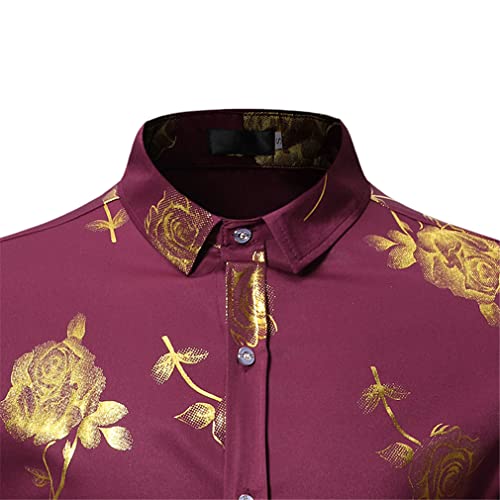 Abbronzante oro rosa floreale camicia uomo primavera slim fit manica lunga abito camicie partito matrimonio camicia, nero, XL