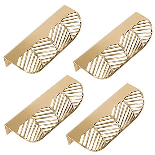 ABchat Gold Cupboard Handles, 4pcs Leaf Shape Cabinet Pulls Brass Gold Furniture Handles Kitchen Door Copper Drawer Pull Knobs Hardware Pulls