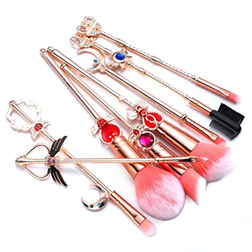 ABchat 8PCS Makeup Brushes Set Magic Sailor Moon Makeup Brush Sakura Cosmetic Makeup Tool Kit Powder Liquid Cream Applicator Pink Drawstring Bag Included(Pink&Gold) Brush Sets