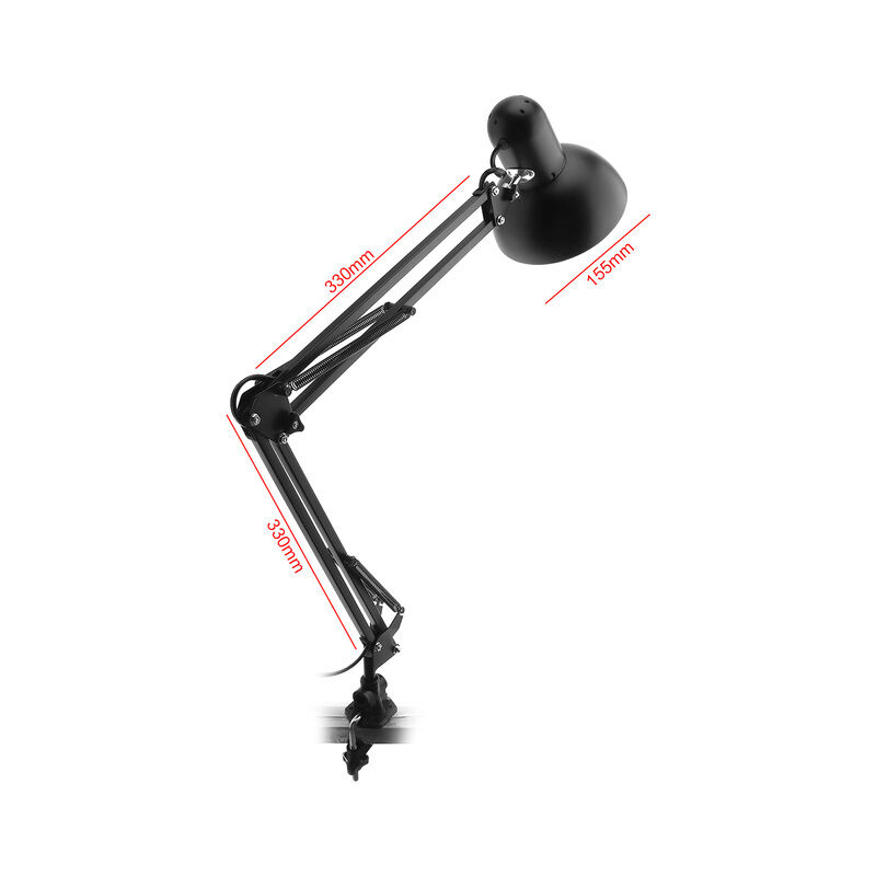 Descrizione Materiale: metallo e plastica Colore: Nero Lampada standard: (lampadina non inclusa) Voltaga: 110-220V Br>Lunghezza del cavo di alimentazione: 1.8M Alta del prodotto: 60CM Characteristics: -Matte black finish. -Modern and sophisticated black swingarm design. -Steel botton control buttons and voltage control buttons.< br>-Morsetti si montano facilmente su tutti i tavoli, i ripiani e le superfici verticali o orizzontali dello studio. -Ideale per qualsiasi studio, casa o ufficio utilizzato. -La lampada stessa occupa fino a una lampadina da 100 watt (non inclusa). Max. Altezza: 33 " Larghezza massima della coppia regolabile: 1 3/4'' Luogo di applicazione: casa, ufficio Nota: Si prega di notare che il portalampada può essere ruotato di 360 gradi, senza lasciare alcuna fonte di luce. Il pacchetto include 1 x Lampada da tavolo a braccio a cilindro (senza lampadina) Con chassis A: With Chassis B: With Clamp A: With Clamp B: Flexible Blade Legs