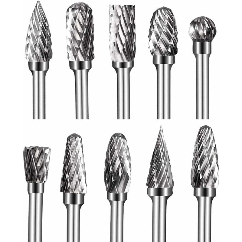 taglio di legno, ferro, acciaio al carbonio, acciaio legato, acciaio inossidabile, rame, alluminio e altri metalli, marmo, giada, osso, ecc. fragola le scanalature trasversali migliorano notevolmente l'efficienza lavoro. 3. Versatile: il set di frese rotative ha 10 forme, che possono soddisfare i requisiti di incisione, foratura, incisione, smussatura, rettifica di scanalature, lucidatura, rimozione di spigoli vivi e persino lavorazione di varie cavità dello stampo con alta precisione. Questo