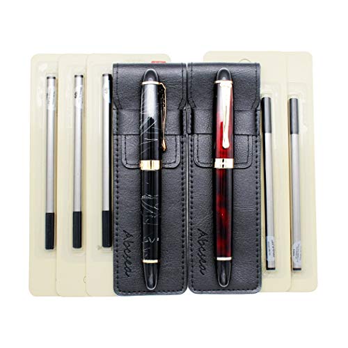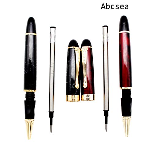 Abcsea 2 pezzi Jinhao 450 penne roller eleganti ricaricabile, penne punta fineliner 0.5 nere (filo bianco e rosso), con 5 pezzi 0,5 mm nero ricariche standard per ricariche penne roller